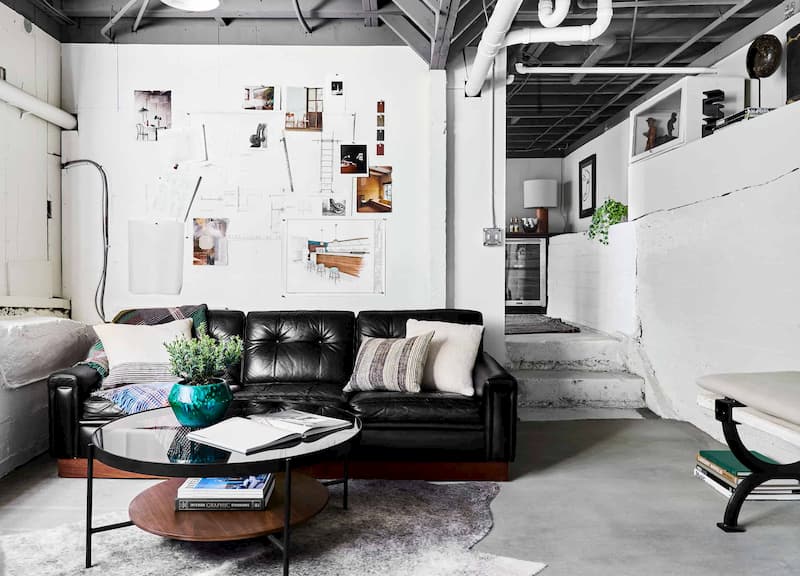 Creative lighting can change a room with little effort. The great thing about this is you can play around with different angles and shapes to make a room feel bigger or cozier depending on what you want. It’s a simple way to give a personal touch to your basement.