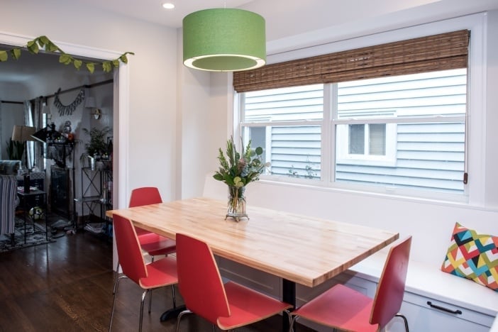 - Enclosed banquette – If you don’t have too much space to work with, consider a table with two banquettes. This little booth setup will provide a cozy area to eat, but won’t be too flexible in terms of seating arrangements.
