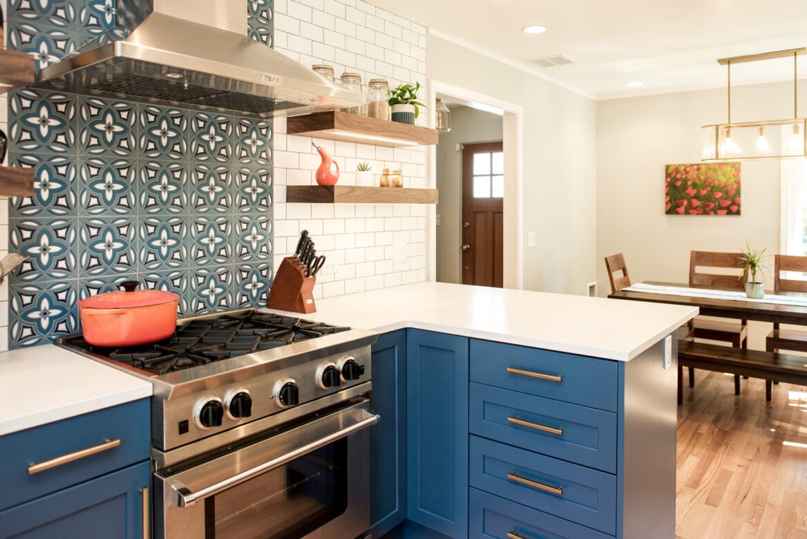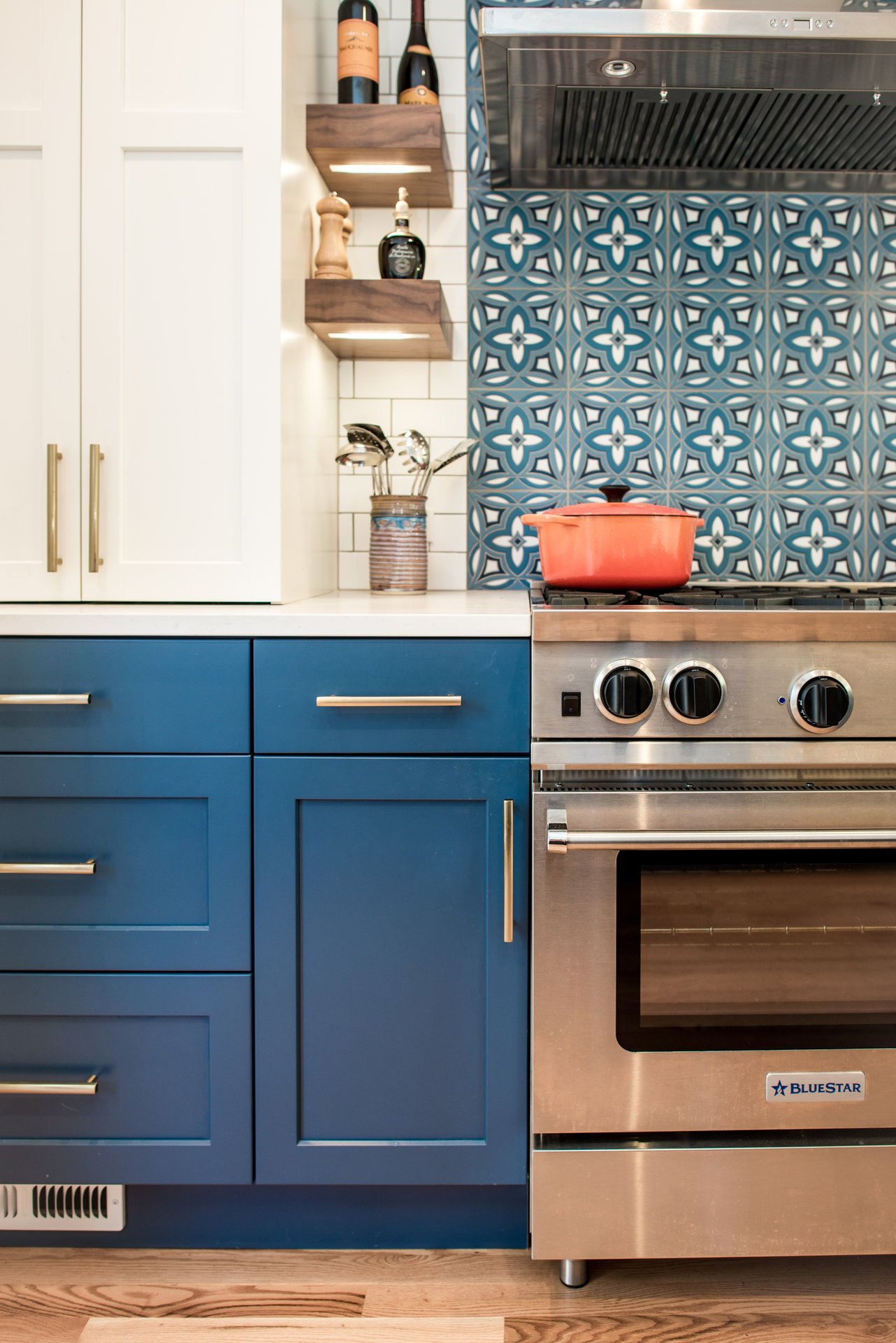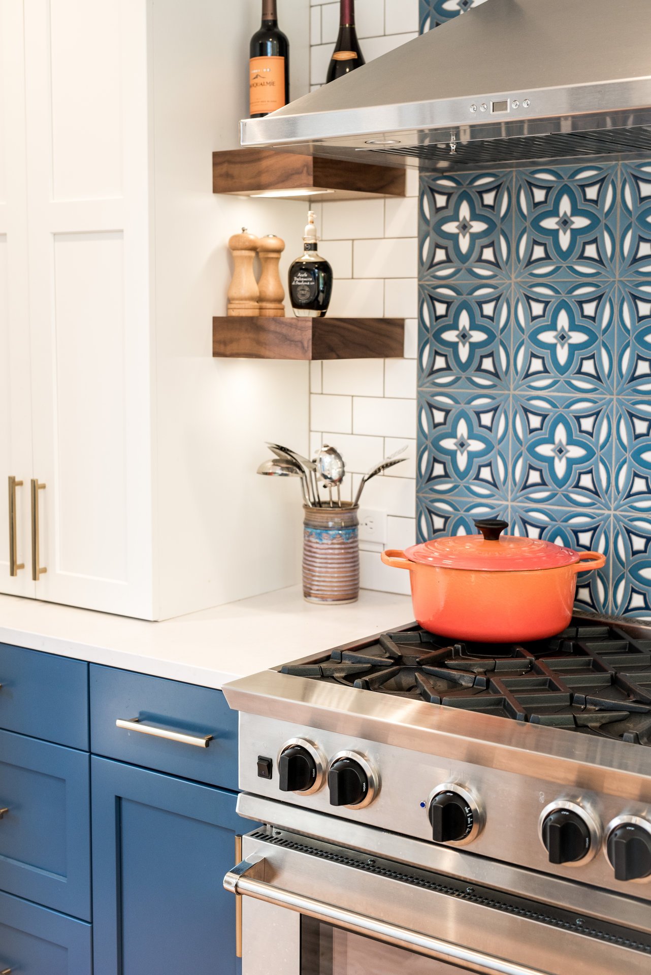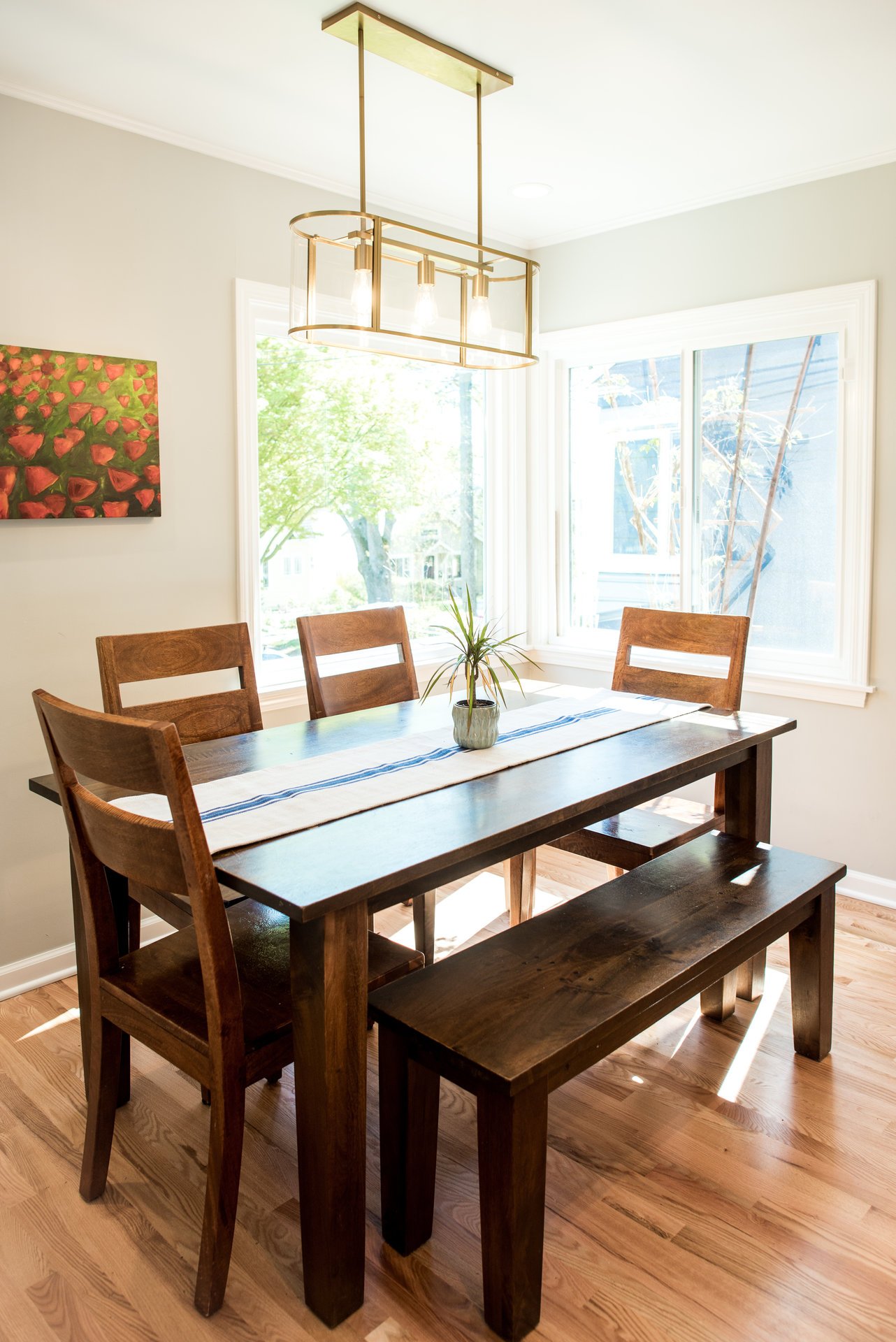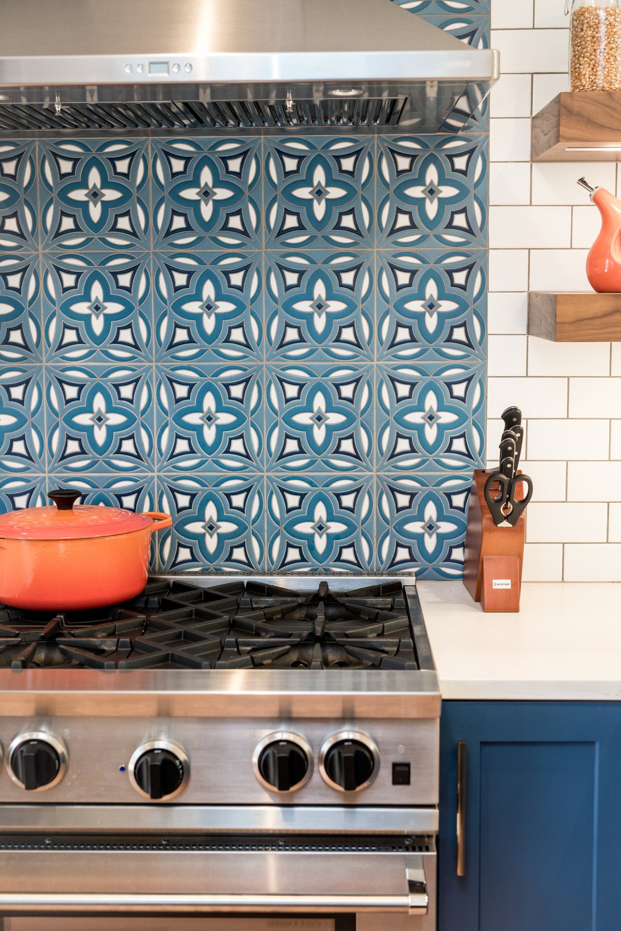 Our clients wanted their home to have a fresh new look that meshed with the needs of their busy family. With a few tweaks to the existing kitchen layout, we maximized counter and cabinet space, adding a deep pantry and breakfast nook cabinets, with built-in power and small appliance storage. A mix of matte white and custom-made Fireclay tiles brighten up the kitchen, as does a new full-light exterior door. The hard-working honed quartz countertops were installed a bit higher to be ergonomically correct for our clients, who are on the taller side.