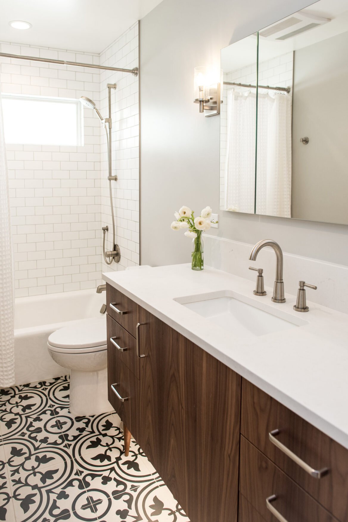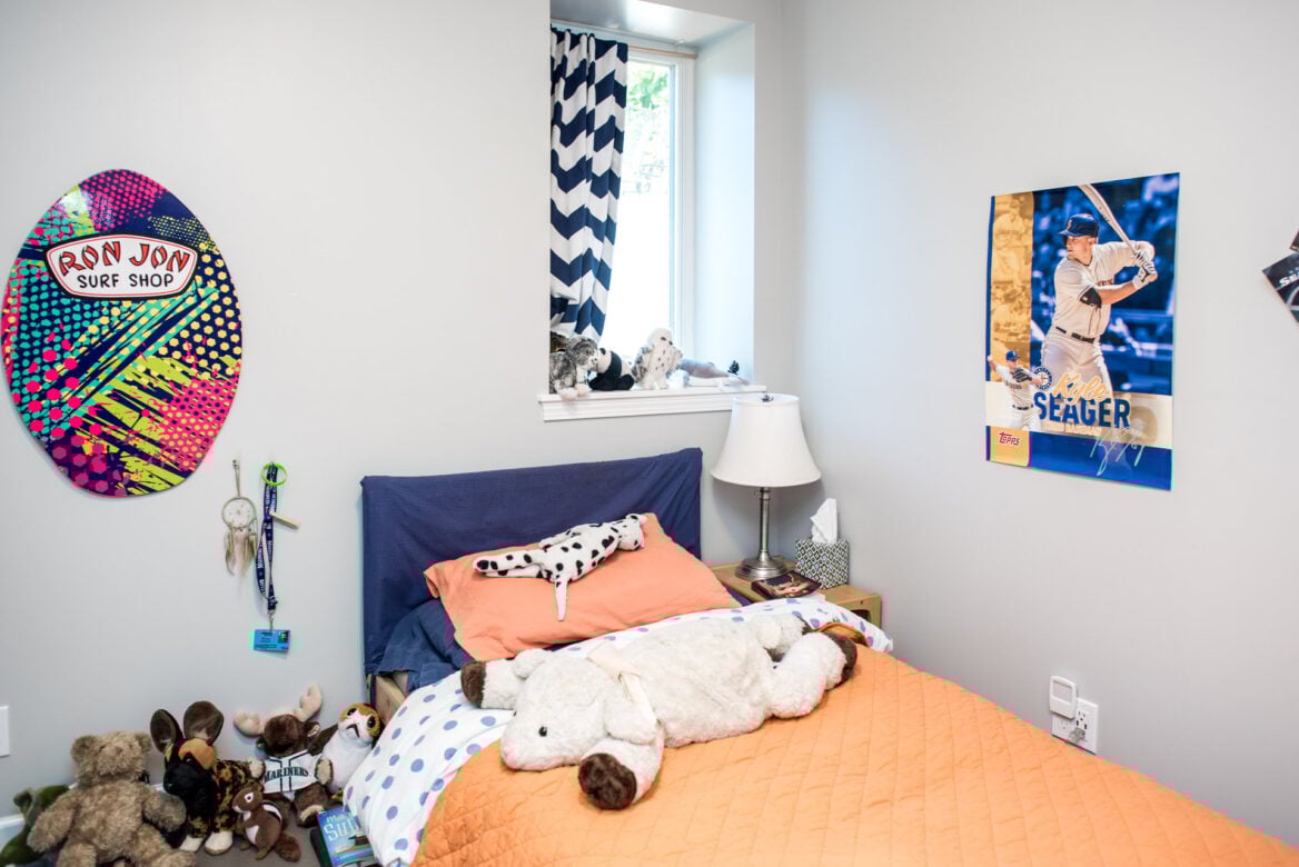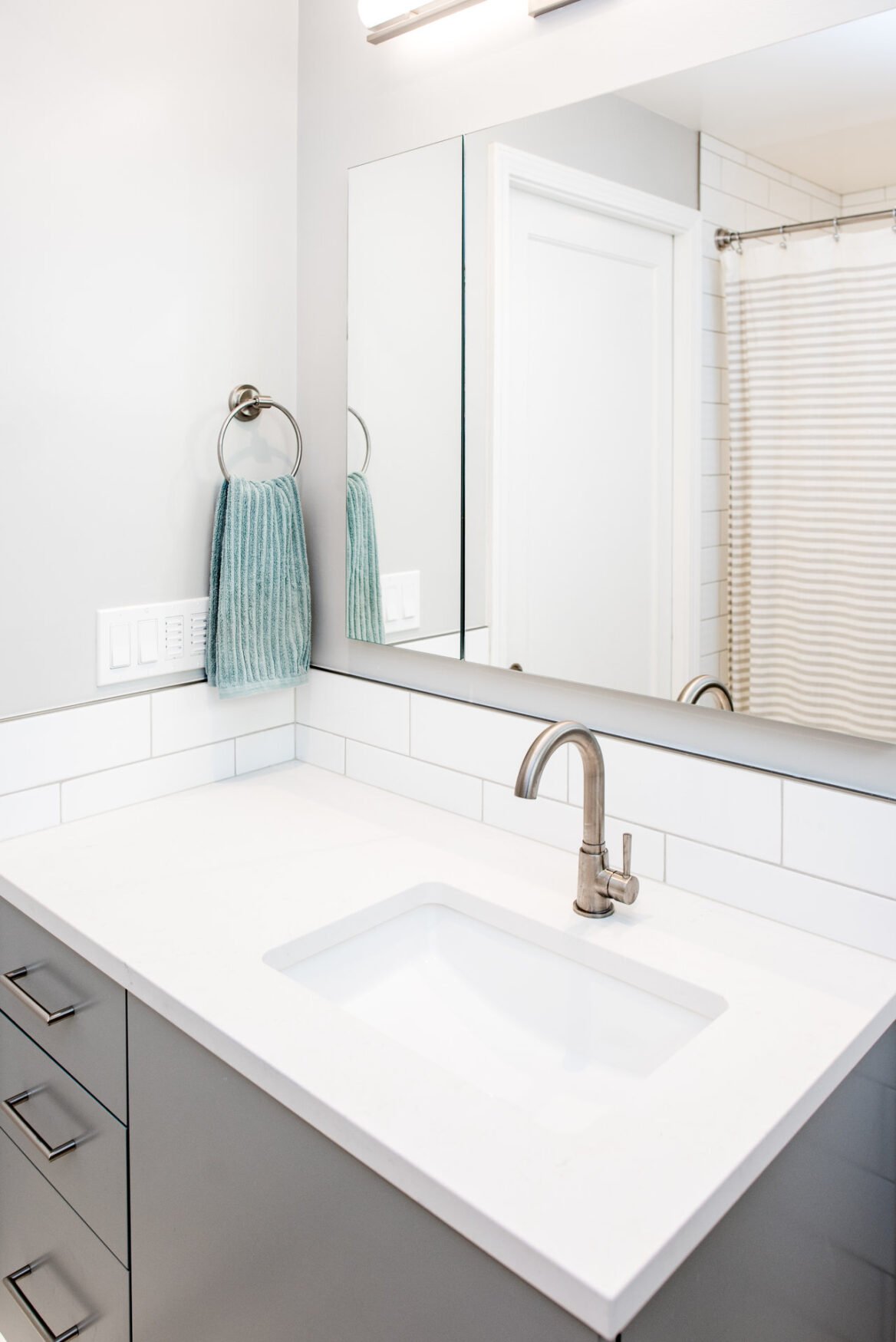 The living and bathroom spaces were redesigned from bottom to top. A basement guest bedroom was reconfigured into two children’s bedrooms and a full bath. A finished laundry room, a music room, and new egress windows were also added downstairs. Upstairs, the master bath design was streamlined to carve out much-needed closet space in the master bedroom. With all-new interior doors and fresh paint throughout, the house feels new and reflects our clients’ excellent taste in finishes and appreciation of functional design.