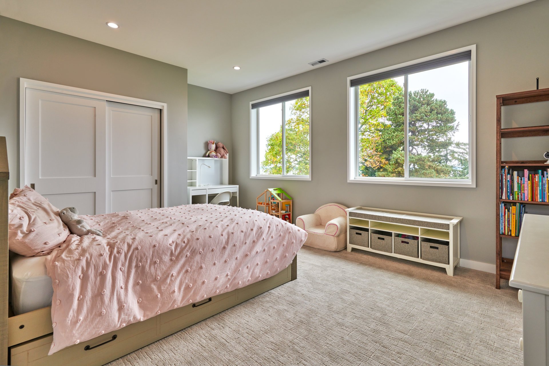 This growing family was looking for more room in their home for their two young children while also taking advantage of their amazing view of the Puget Sound. Our team was able to double the number of rooms in their home from 3 to 6 with a second-story addition that focused on having large windows in each room and hallway to capture their gorgeous view. We created two large children’s rooms and a second master suite so the original master can be used as a guest bedroom for when their friends and family visit.