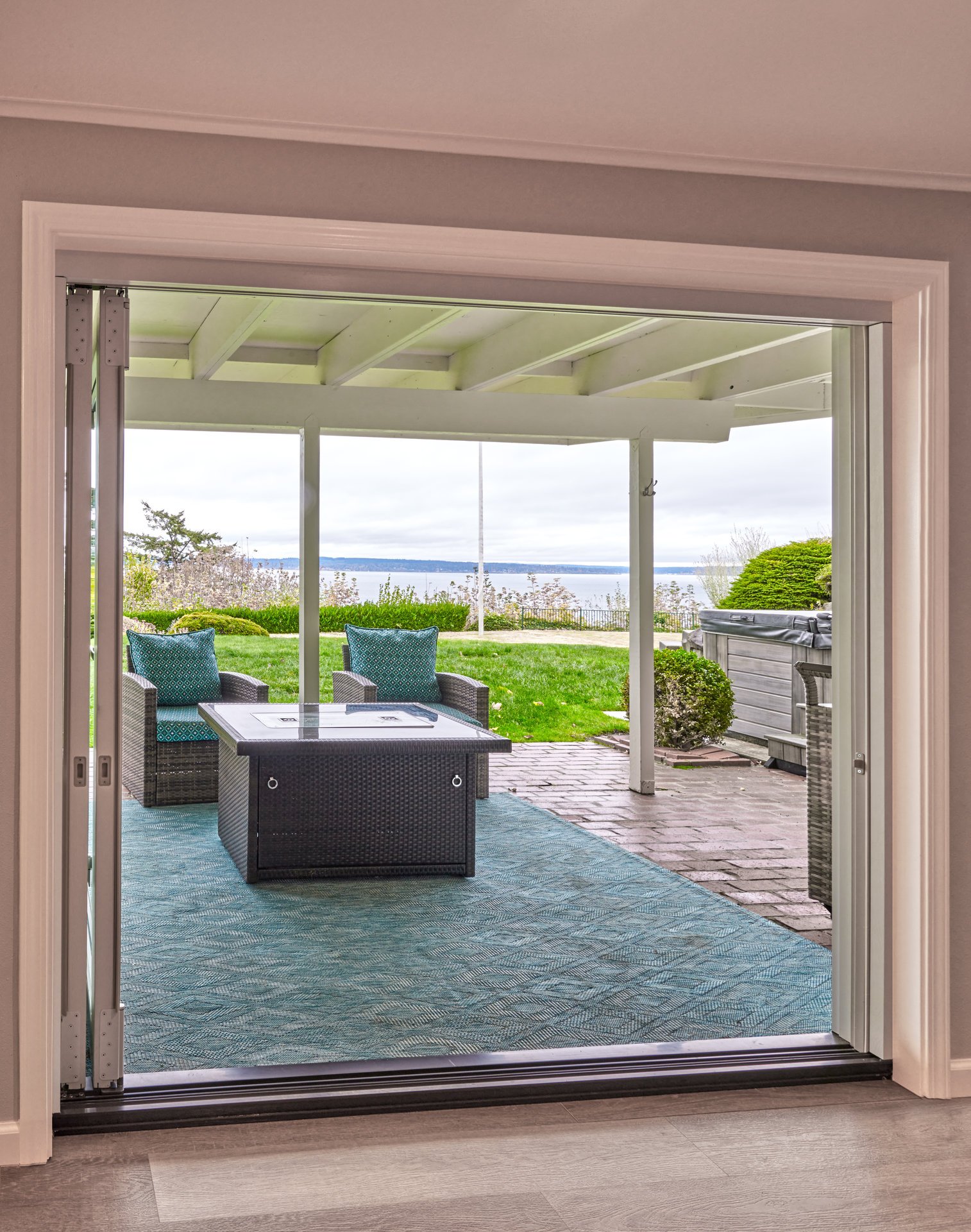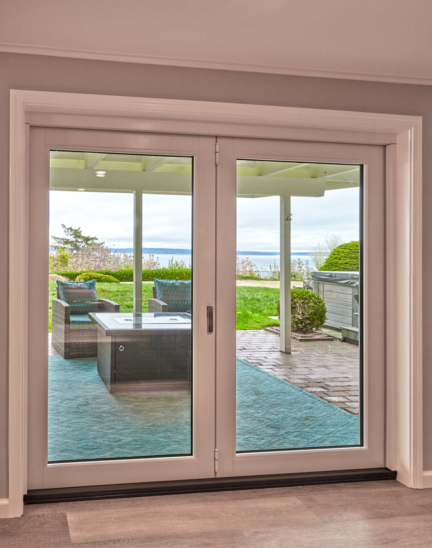 We also remodeled their downstairs basement to match the aesthetic and open design of the rest of their home. We installed a custom two-panel large glass door that brought in light and gave them better access to their stunning view. This door also allows easier outside access to enjoy their patio in warmer months.
