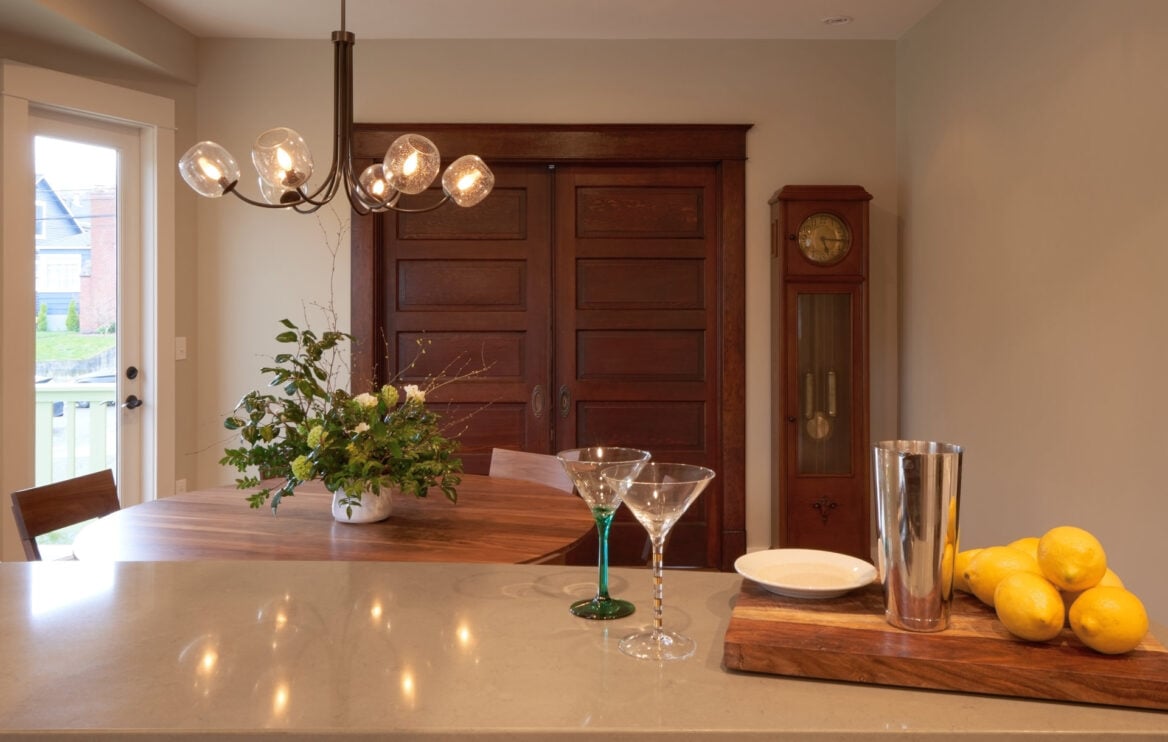 Located in the heart of Seattle’s vibrant Fremont, neighborhood, this dilapidated bungalow was completely remodeled and transformed in to an award-winning craftsman gem. The interior and exterior of the home were remodeled, the house was lifted, and an accessory dwelling unit was created in the daylight basement. The house boasts a number of green features like metal roofing with solar array, in-floor radiant electric floor heat, energy-efficient appliances, 97% natural, raw marmoleum, low-E double pane windows, and a 1,000 gallon rainwater storage tank.
