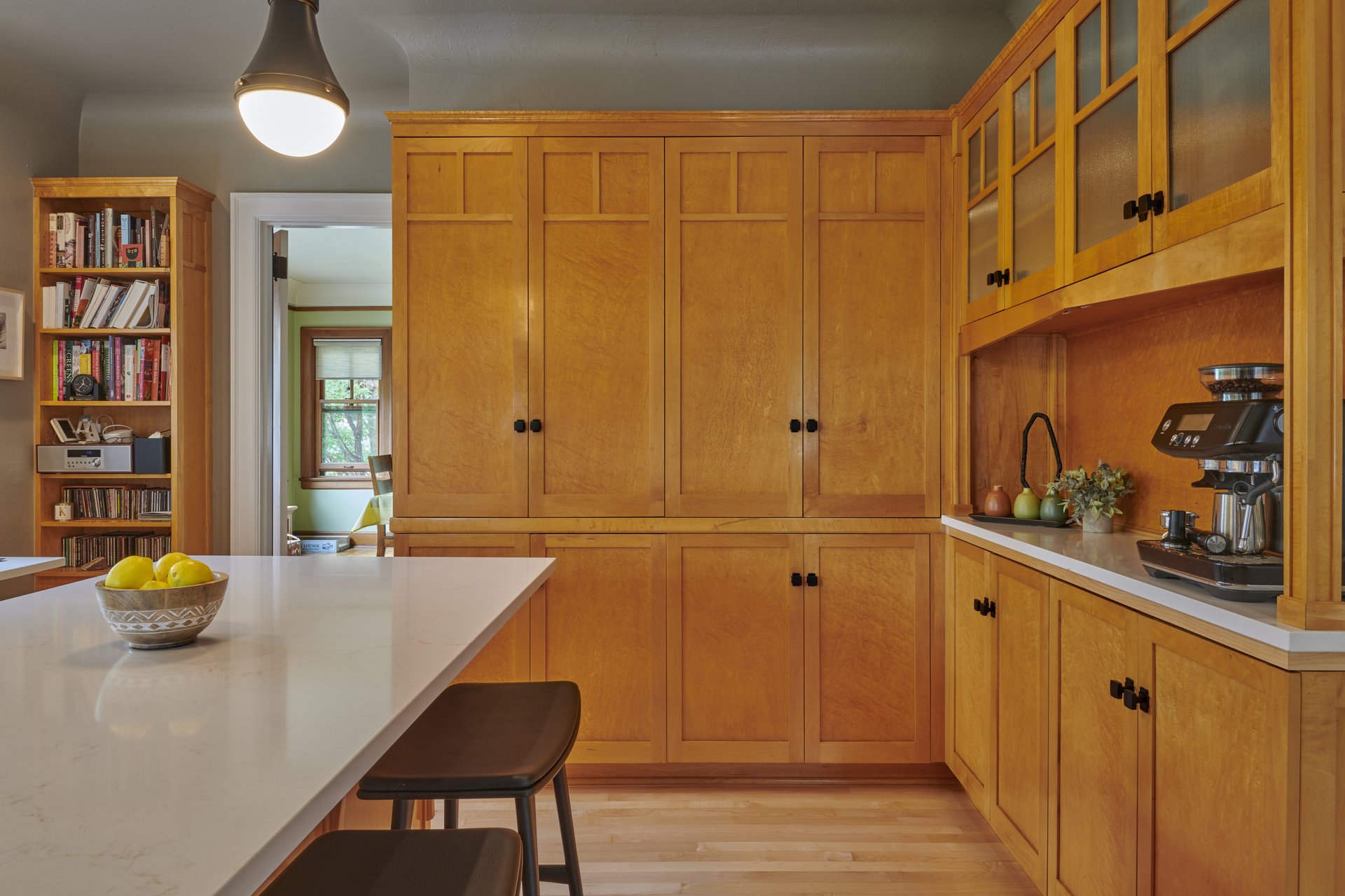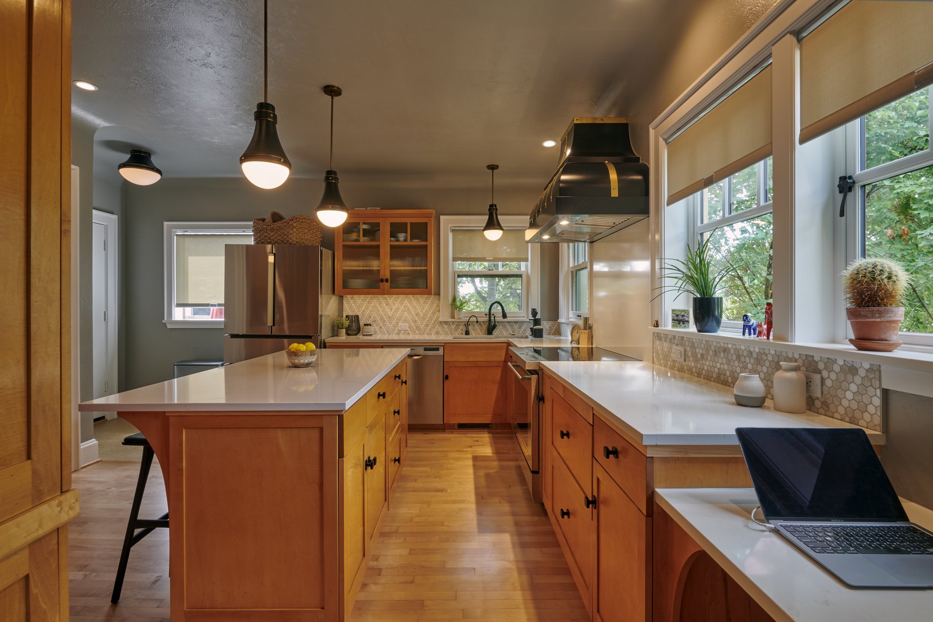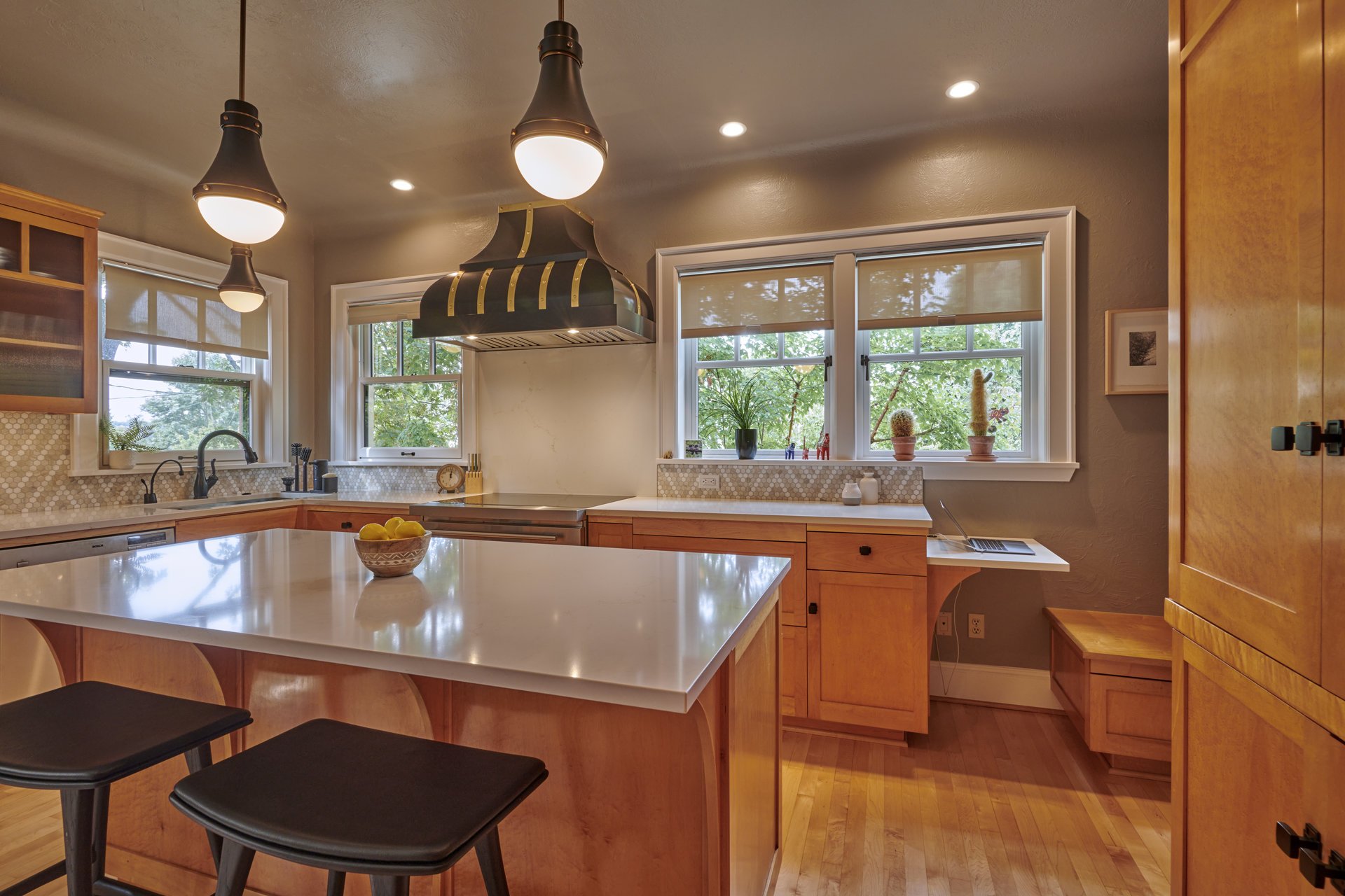 For this Fremont home, we took an approach that honored the existing layout while delivering a modern update. In the kitchen, the original layout worked well for the homeowners, so we focused on revitalizing the space with new countertops and a unique hood. This thoughtful update, combined with fresh finishes, brought new life to a well-loved space.