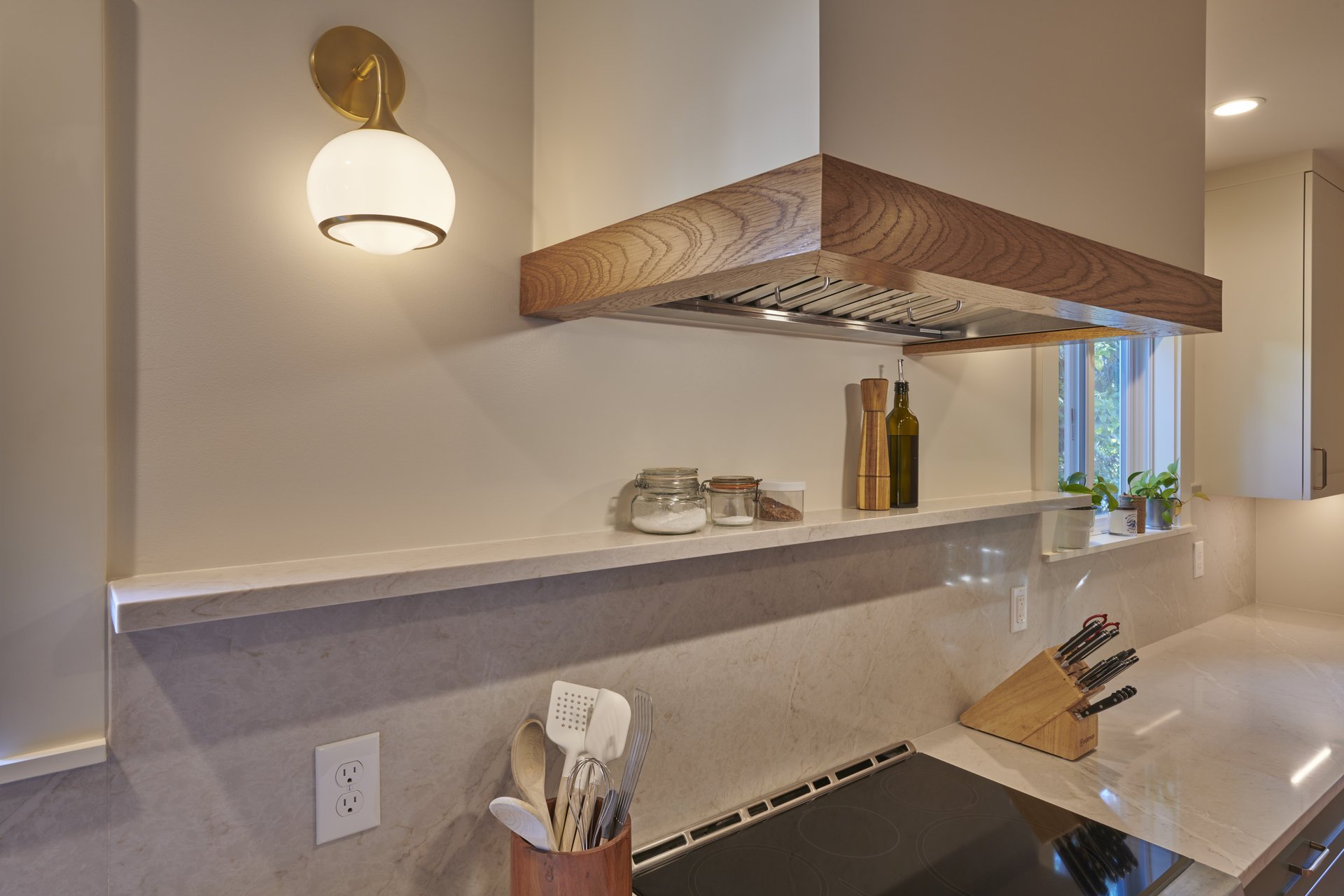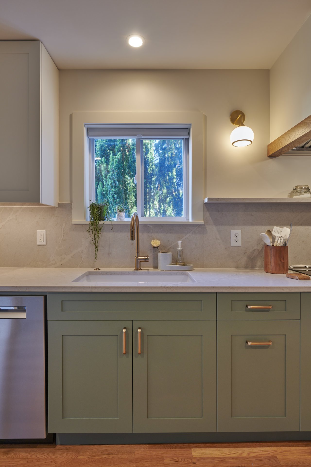 This Loyal Heights kitchen remodel honors the original galley layout while introducing a fresh, open feel. By widening the entry, we created a more welcoming flow into the kitchen without changing the location of major elements. The existing layout was optimized for efficiency, so we retained the positioning of appliances and cabinetry while enhancing storage and functionality with modern cabinetry and custom organization solutions.