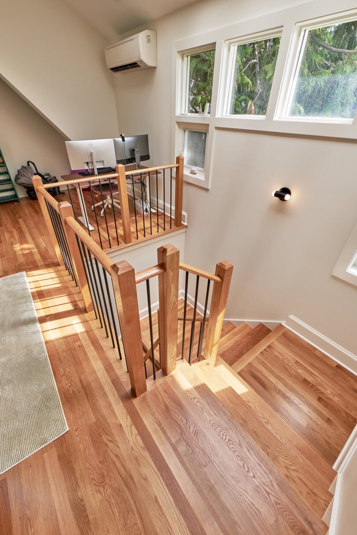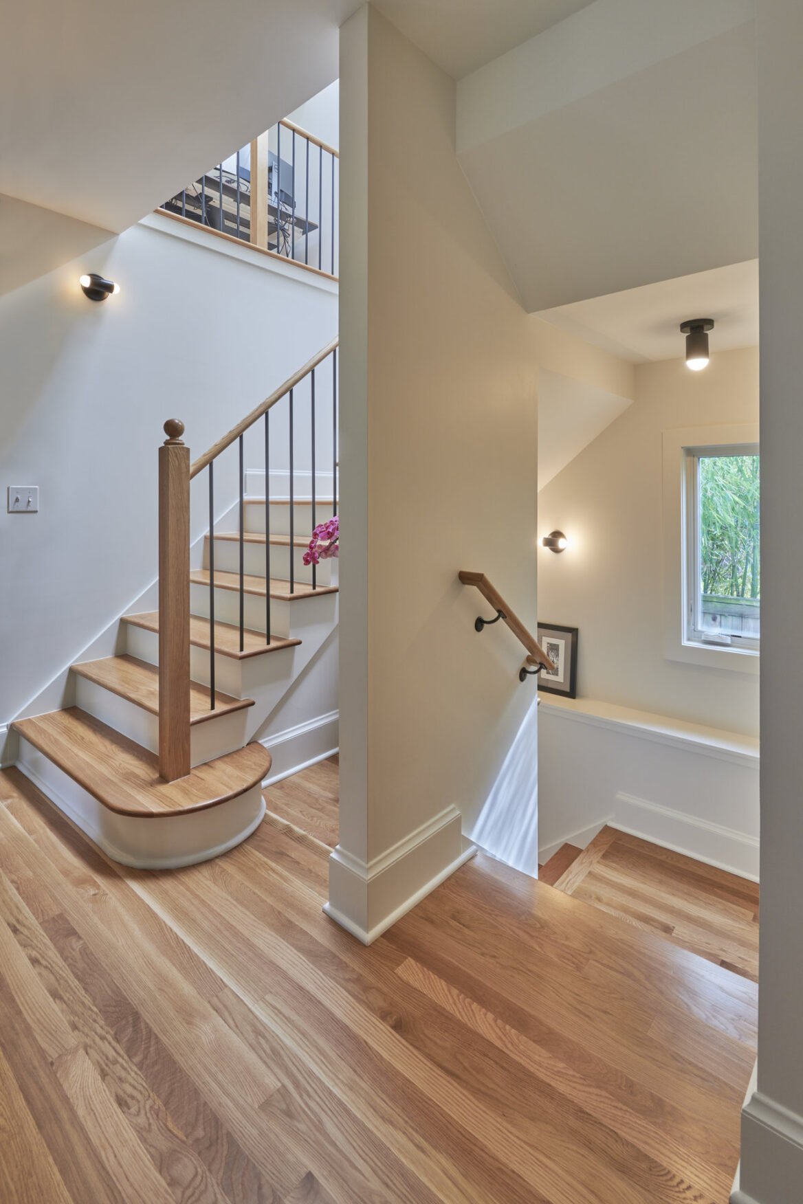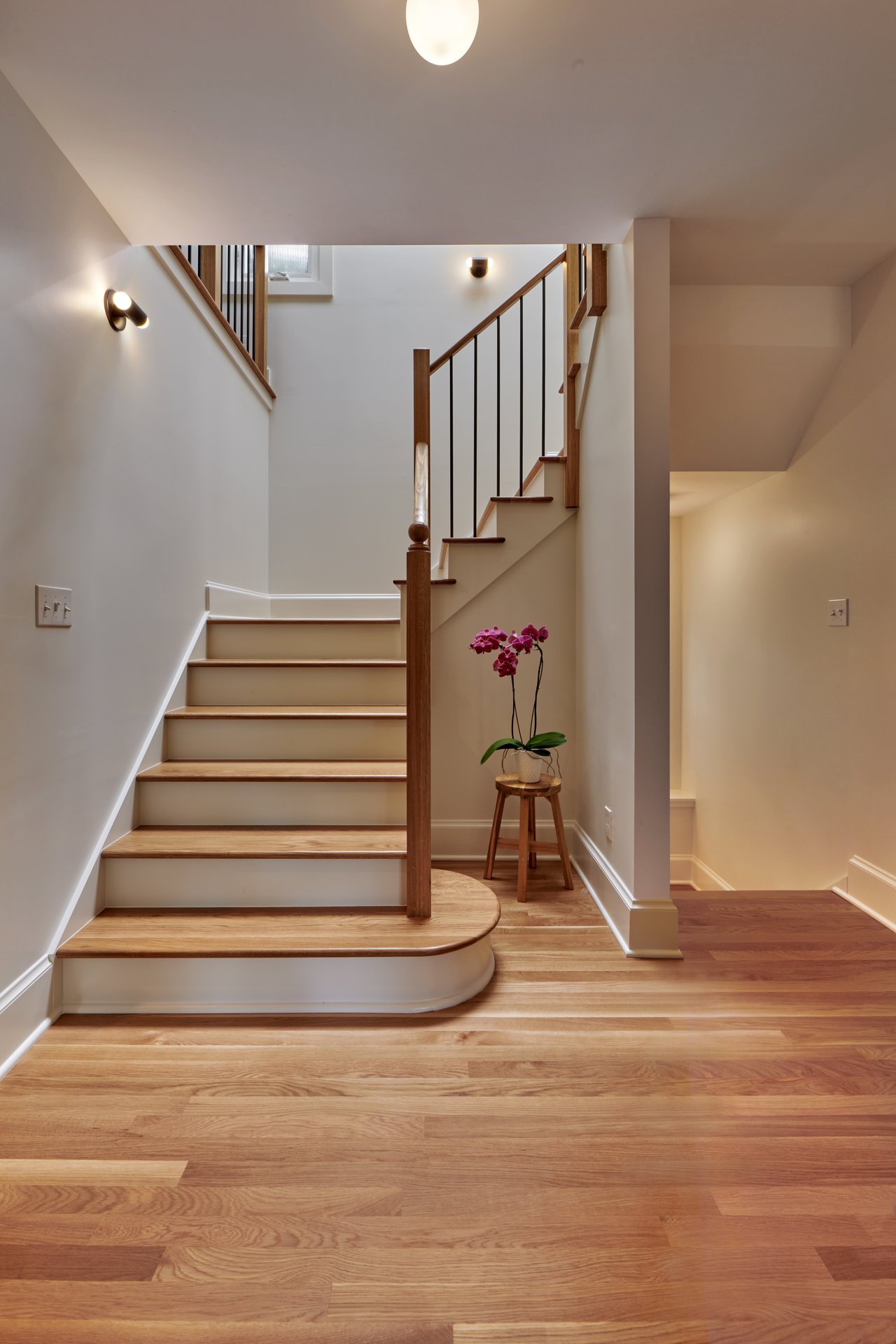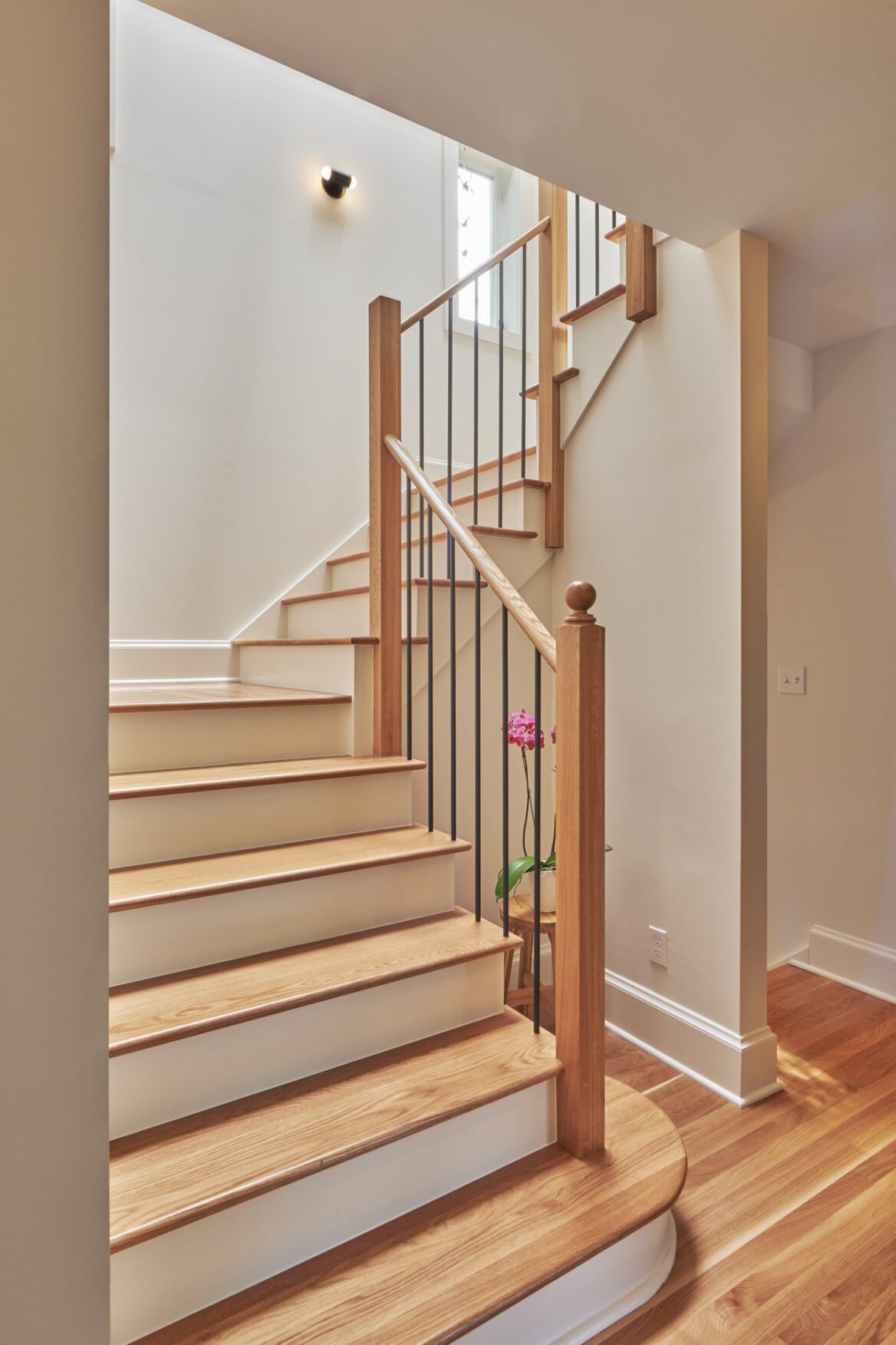 Our Design-Build team undertook a remarkable transformation of this 1,800-square-foot residence, evolving it from a two-story structure with a partially finished basement into a breathtaking three-story home with an entirely reimagined layout. The comprehensive renovation project commenced with the removal of the original steep spiral staircase and outdated basement stairs. A central challenge we faced was designing the new layout around the staircase, as we aimed to preserve as much floor space as possible in this three-story home.