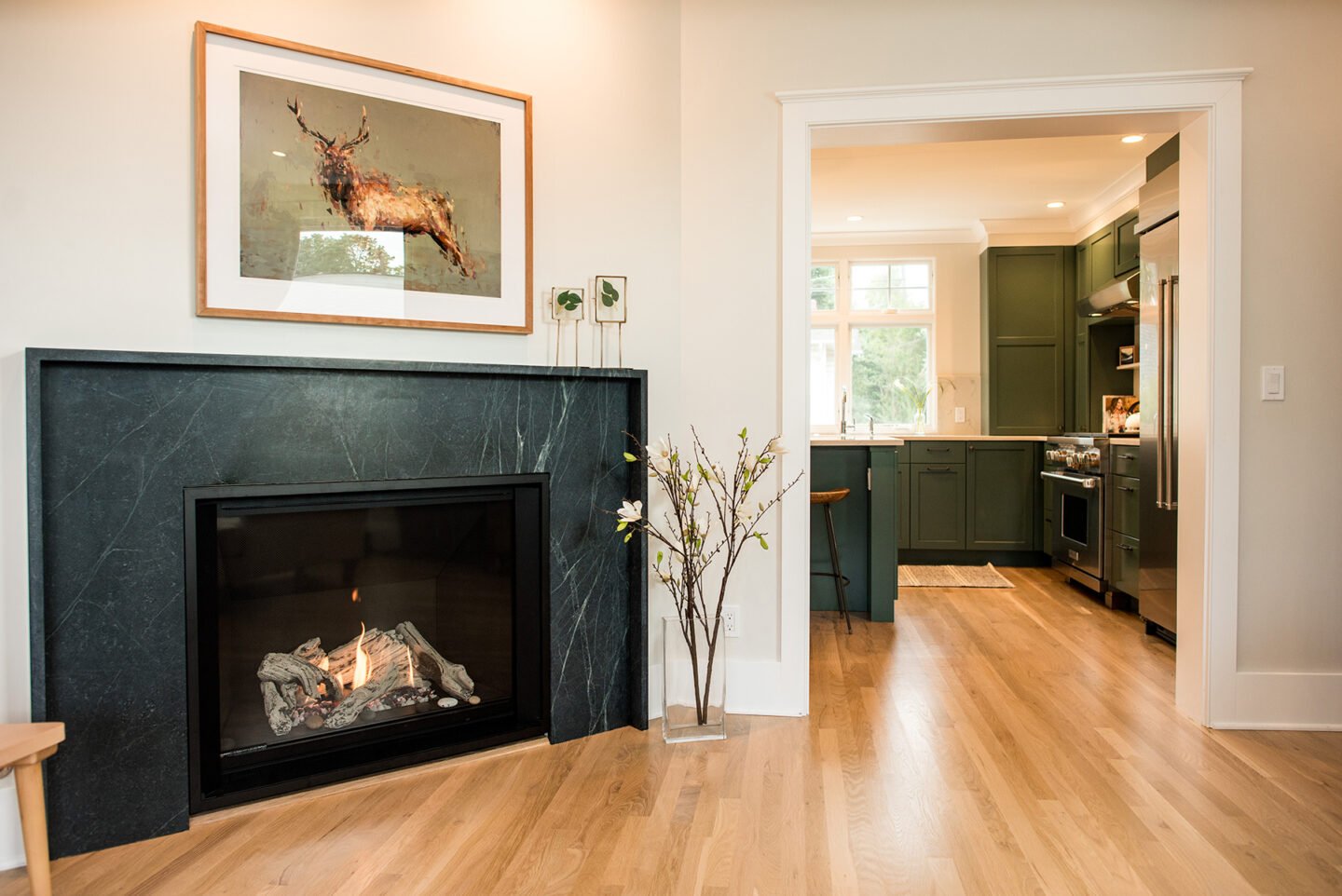 Our clients loved how their Mercer Island home was starting to come together after some recent renovations, but a major problem area remained: Their primary bedroom was cramped and dark, and their tiny en-suite bath didn’t even have a shower. It was time for an upgrade to a true master suite. CRD expanded the home to create a chic new master bedroom with access to the lushly landscaped backyard. A luxurious new primary bath gleams with a particularly high level of fit and finish, and an artfully redesigned hallway bath wows guests with its bold organic patterns.