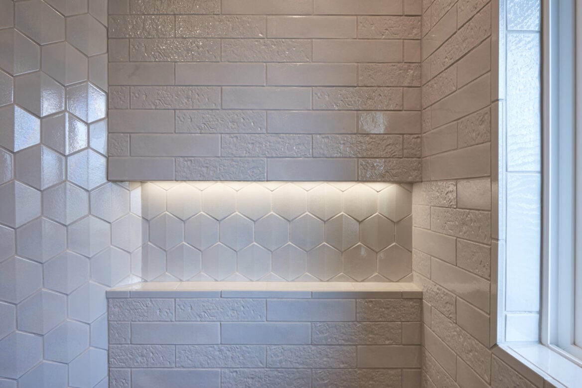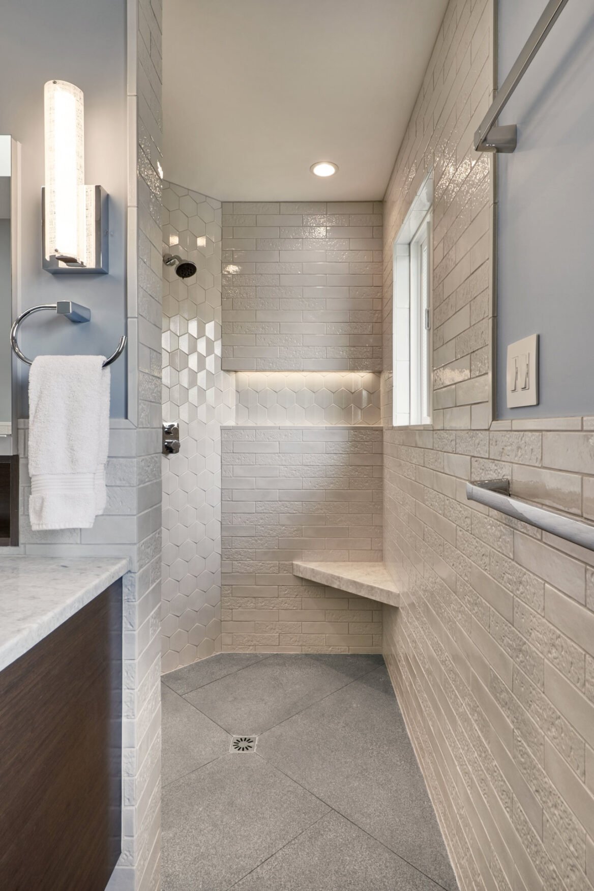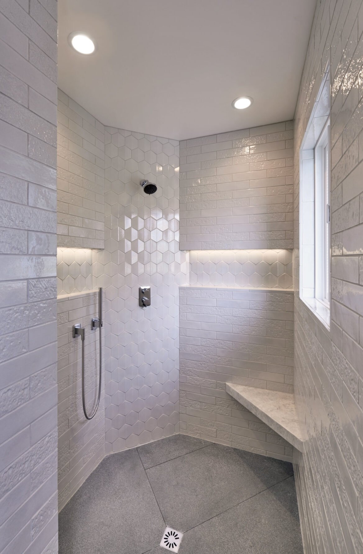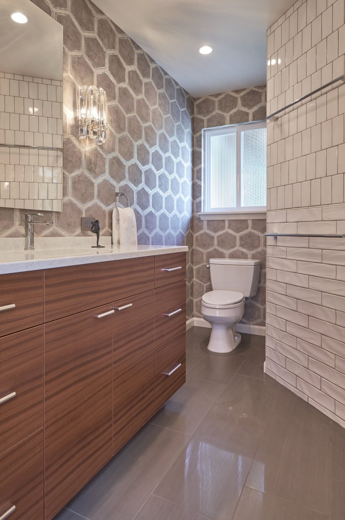 Our clients loved how their Mercer Island home was starting to come together after some recent renovations, but a major problem area remained: Their primary bedroom was cramped and dark, and their tiny en-suite bath didn’t even have a shower. It was time for an upgrade to a true master suite. CRD expanded the home to create a chic new master bedroom with access to the lushly landscaped backyard. A luxurious new primary bath gleams with a particularly high level of fit and finish, and an artfully redesigned hallway bath wows guests with its bold organic patterns.