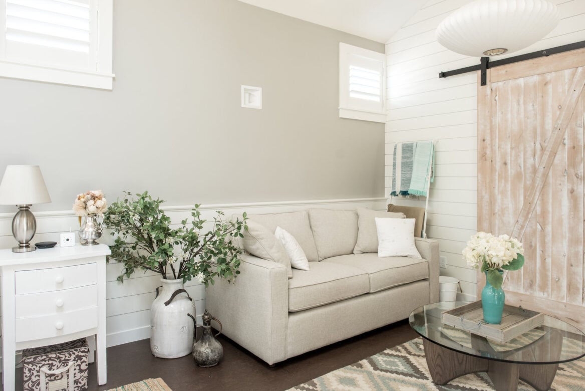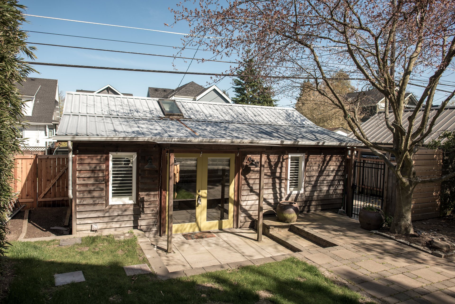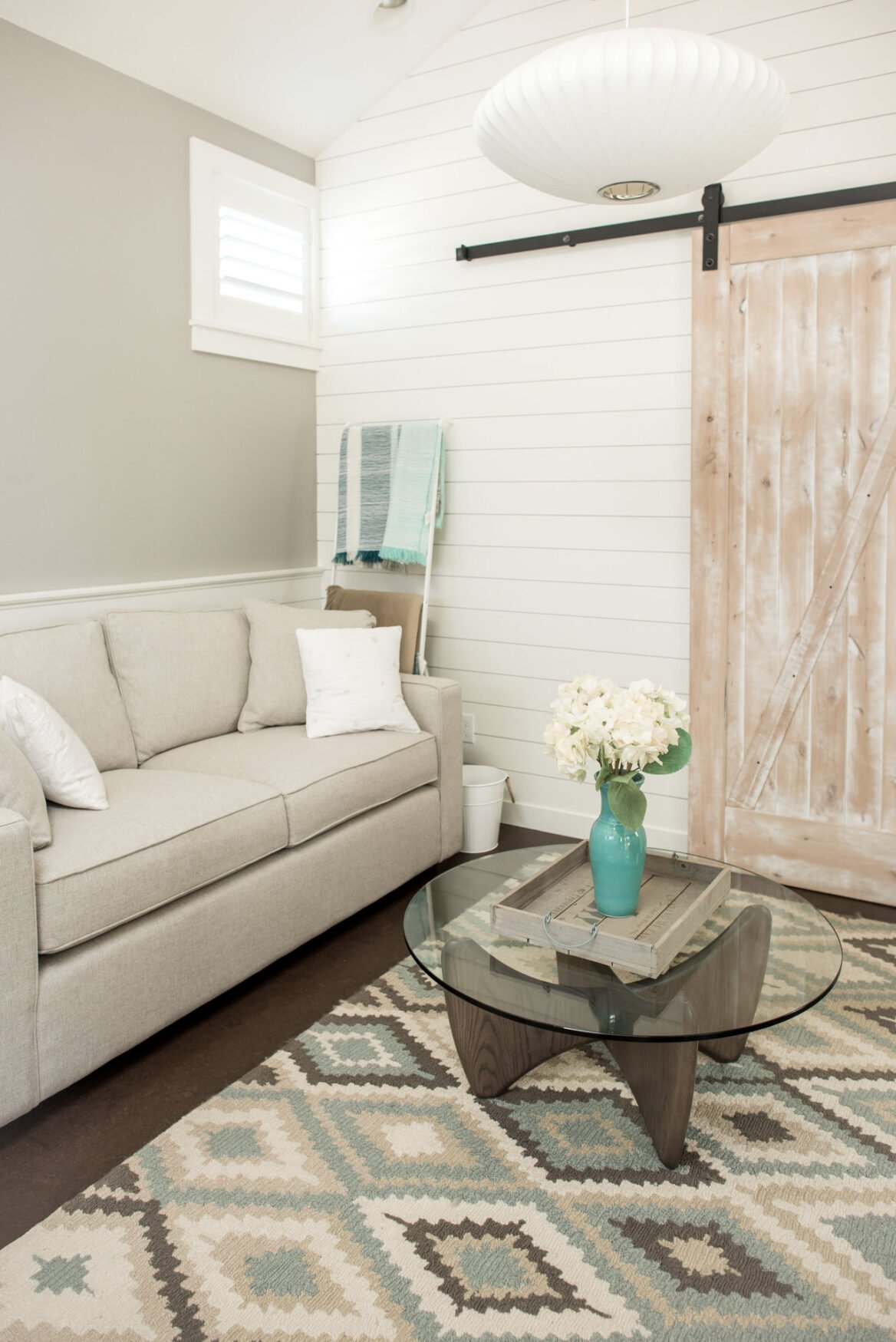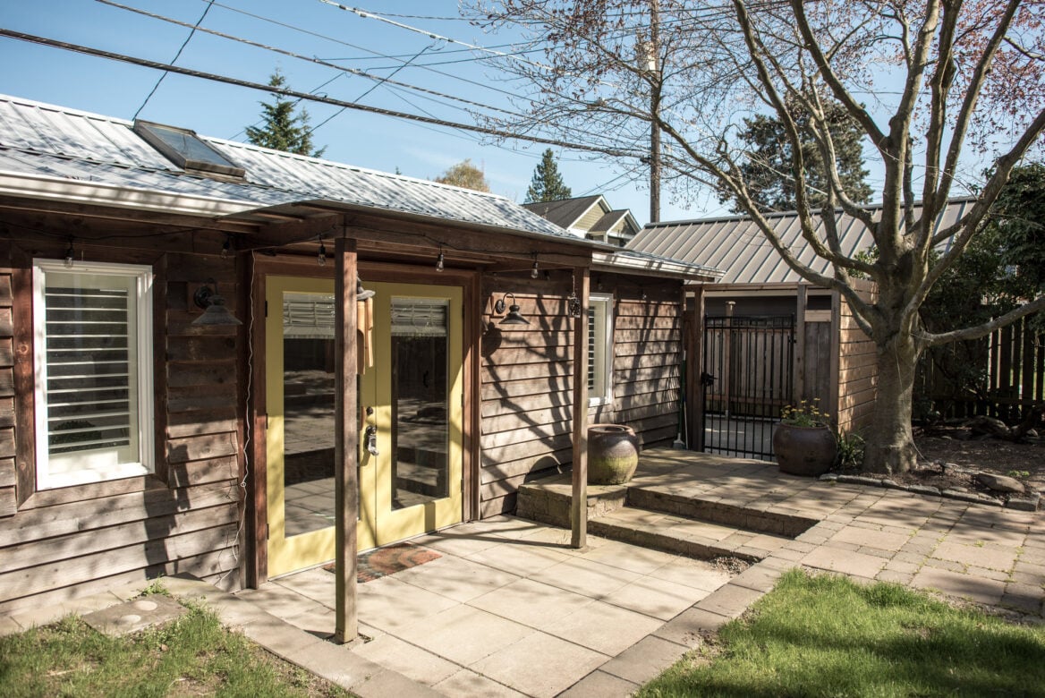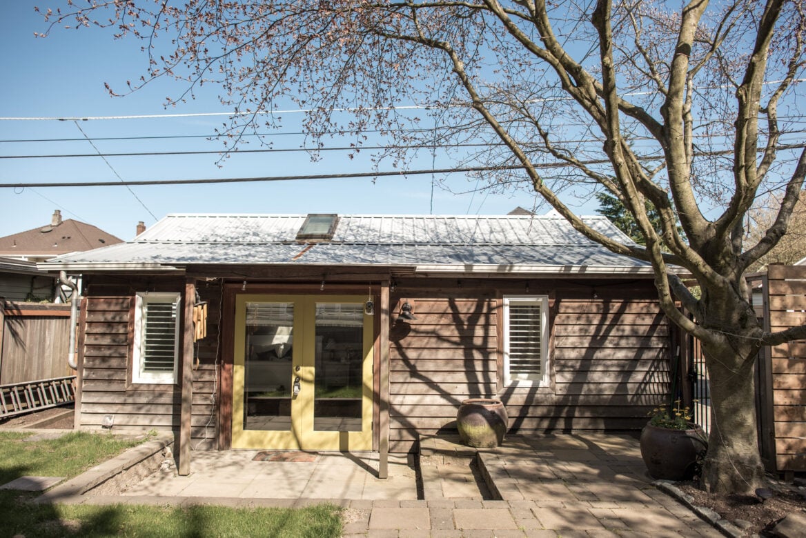 A backyard cottage may be the ultimate home accessory. But this little bungalow does more than just add charm to the backyard of this stately Queen Anne residence. It is serving as a home base for the owners while we complete a gut renovation of the main house. And a cozy home base it is! The structure started as an open workshop, and we added a luxurious bathroom, custom vanity, and ship-lap wainscoting throughout. In the process, the style was updated from contemporary to transitional, to match the new design of the main house.