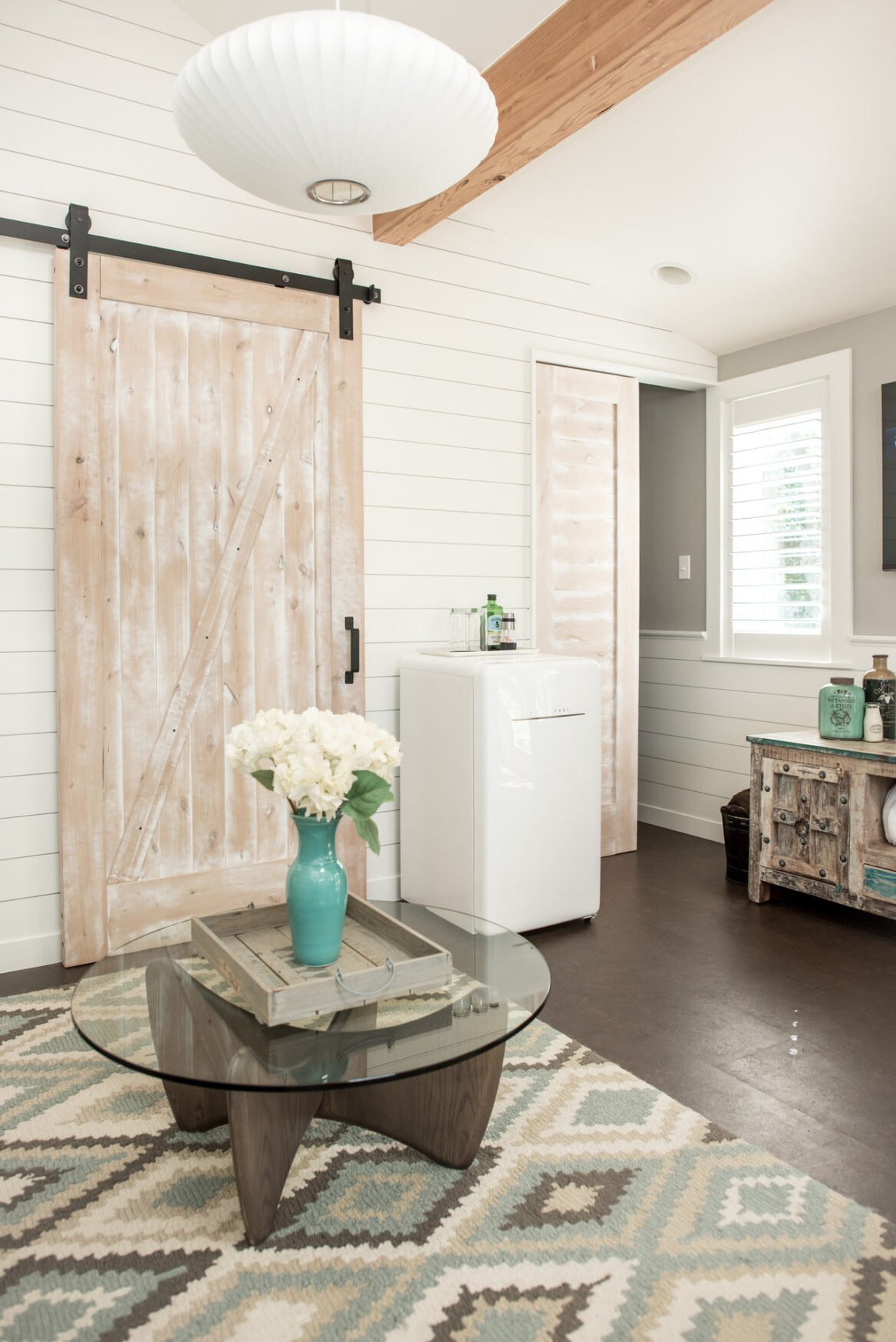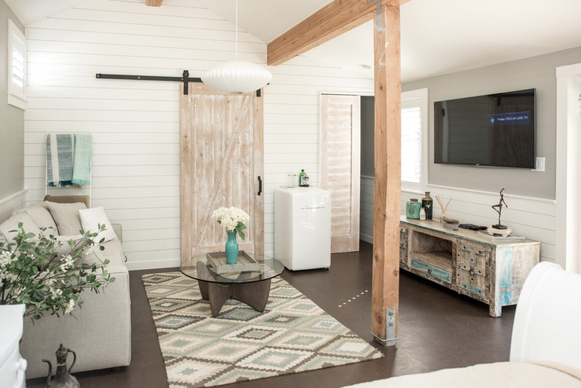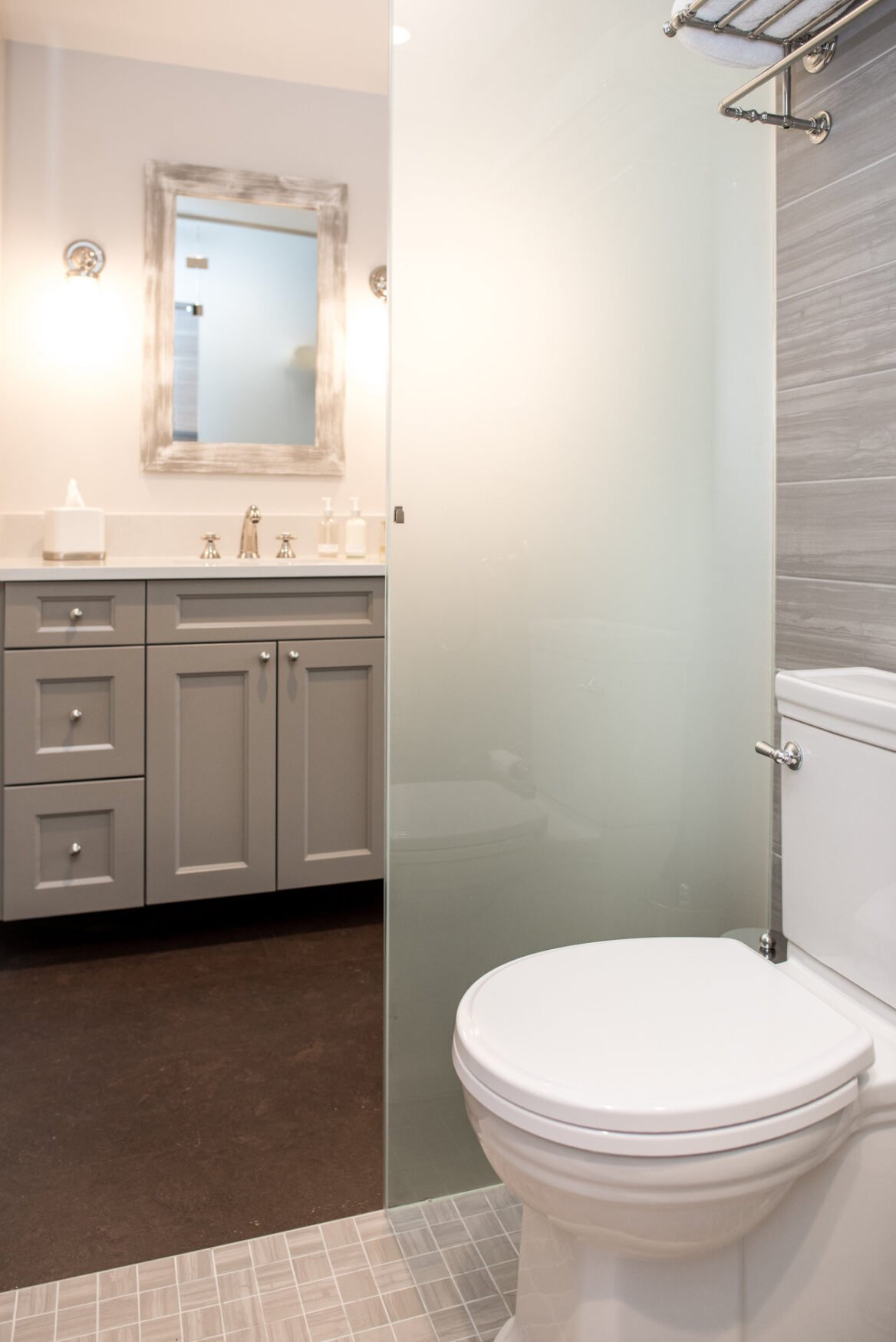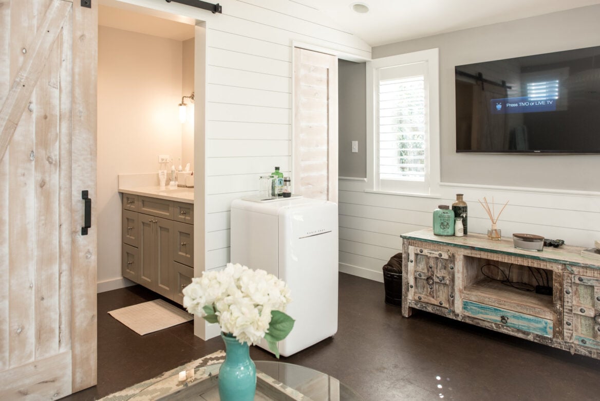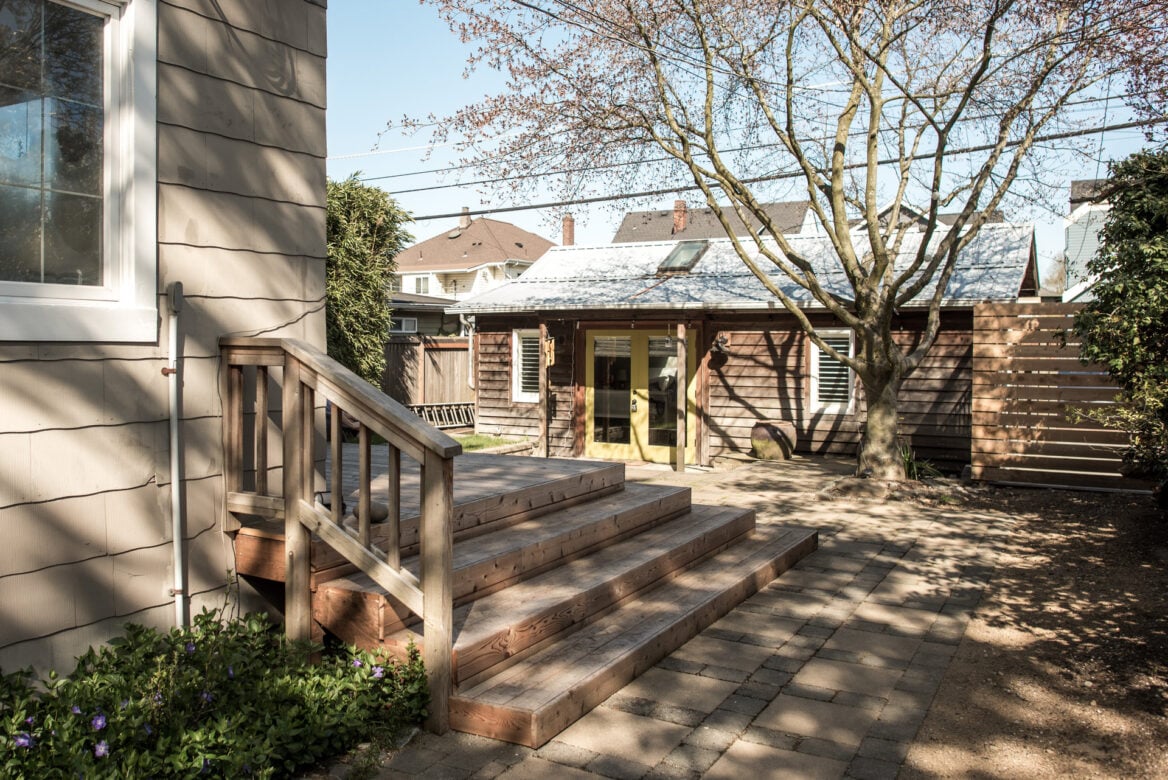 A backyard cottage may be the ultimate home accessory. But this little bungalow does more than just add charm to the backyard of this stately Queen Anne residence. It is serving as a home base for the owners while we complete a gut renovation of the main house. And a cozy home base it is! The structure started as an open workshop, and we added a luxurious bathroom, custom vanity, and ship-lap wainscoting throughout. In the process, the style was updated from contemporary to transitional, to match the new design of the main house.
