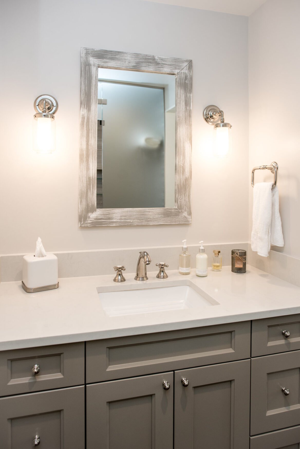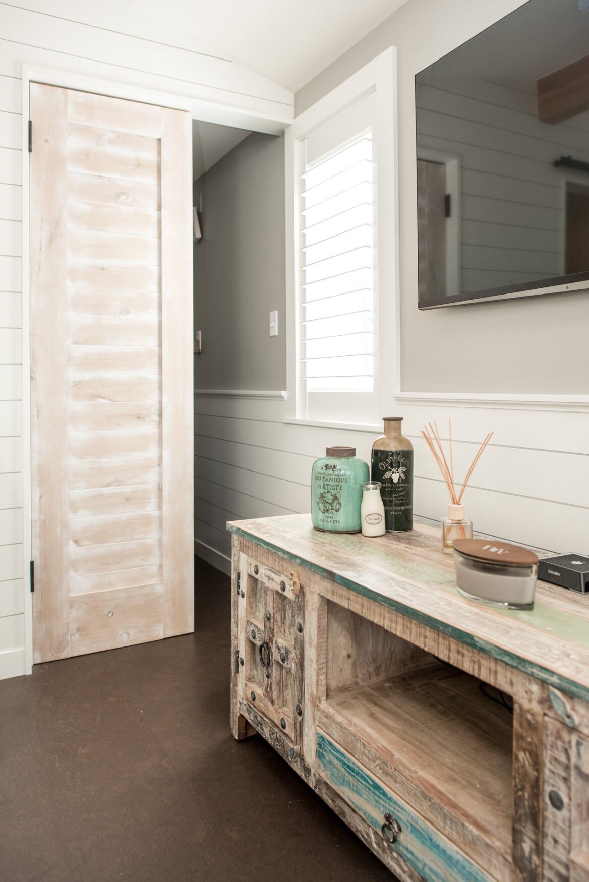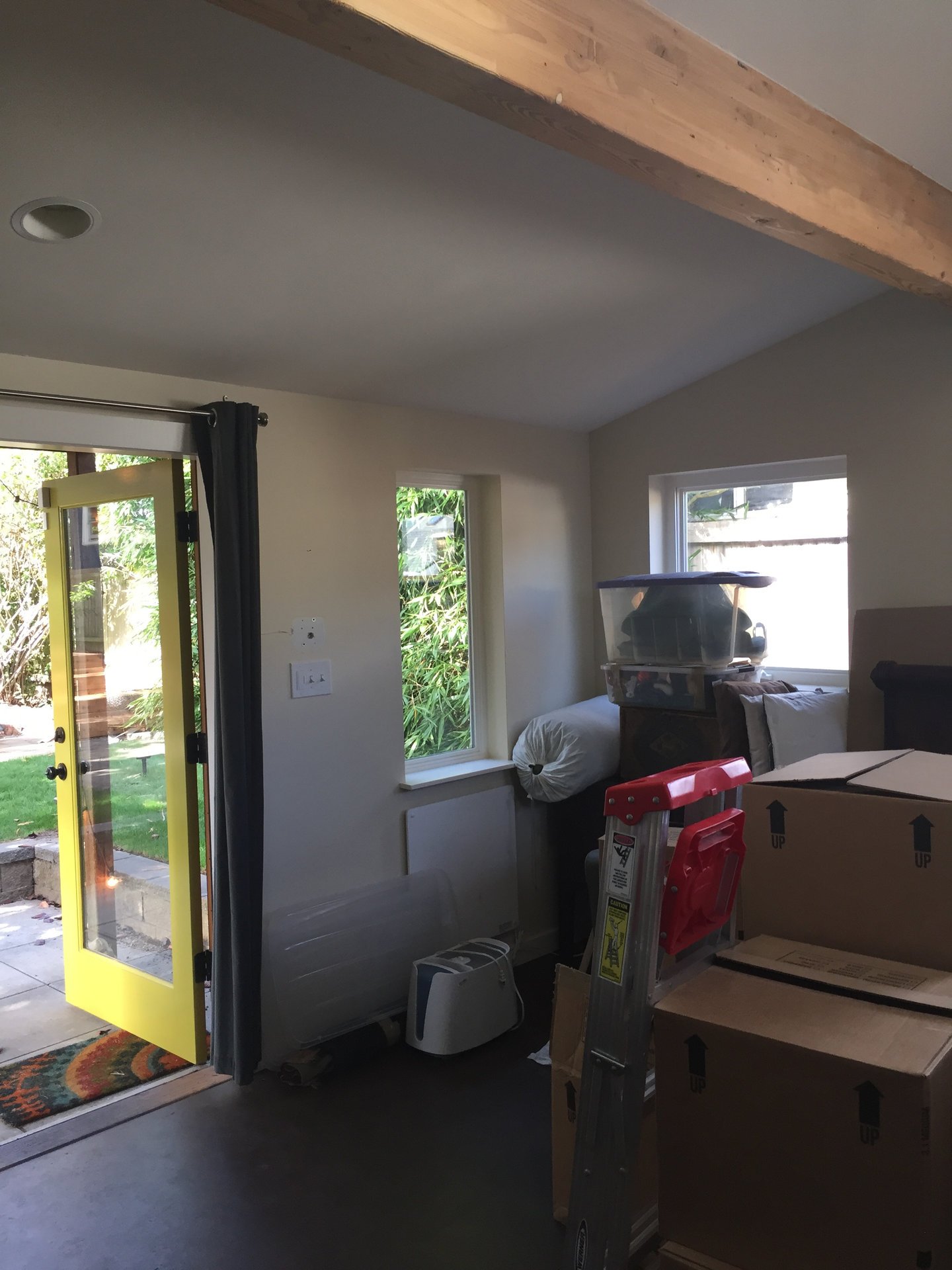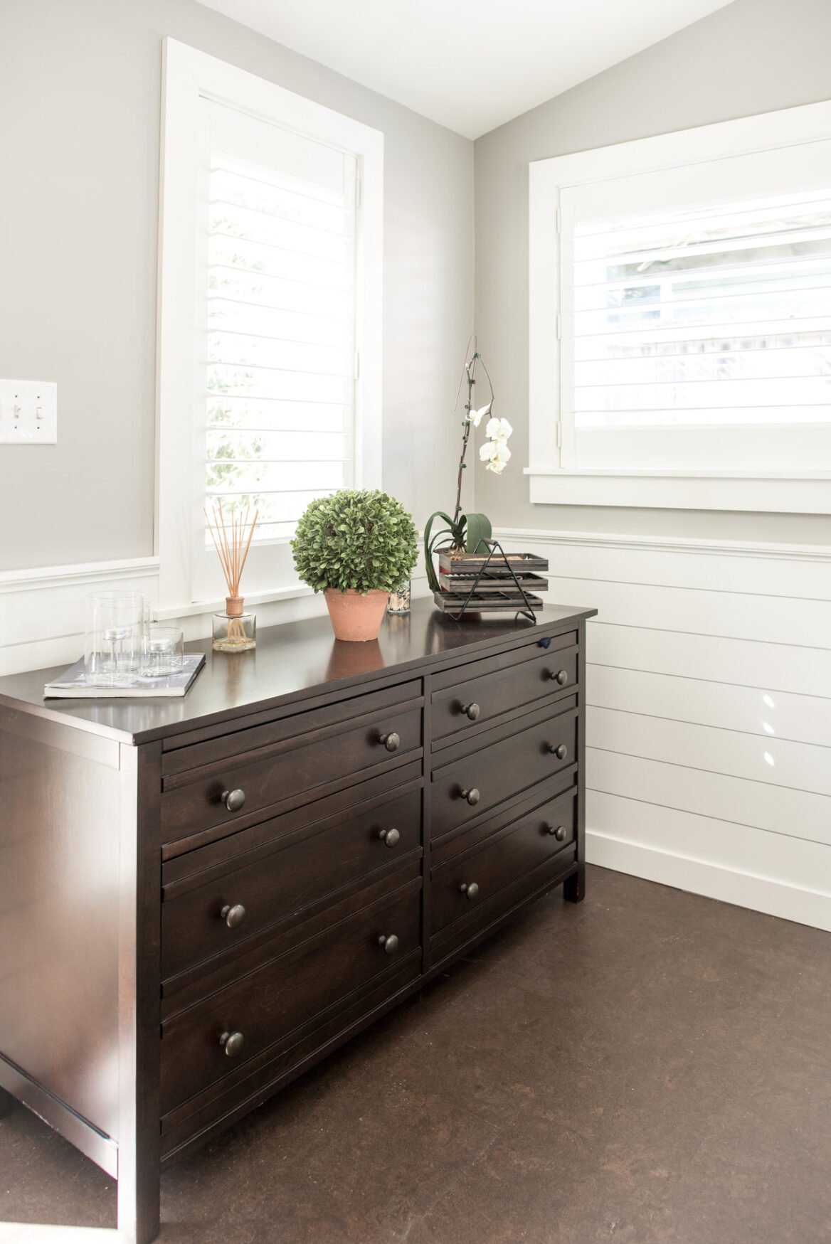 A backyard cottage may be the ultimate home accessory. But this little bungalow does more than just add charm to the backyard of this stately Queen Anne residence. It is serving as a home base for the owners while we complete a gut renovation of the main house. And a cozy home base it is! The structure started as an open workshop, and we added a luxurious bathroom, custom vanity, and ship-lap wainscoting throughout. In the process, the style was updated from contemporary to transitional, to match the new design of the main house.