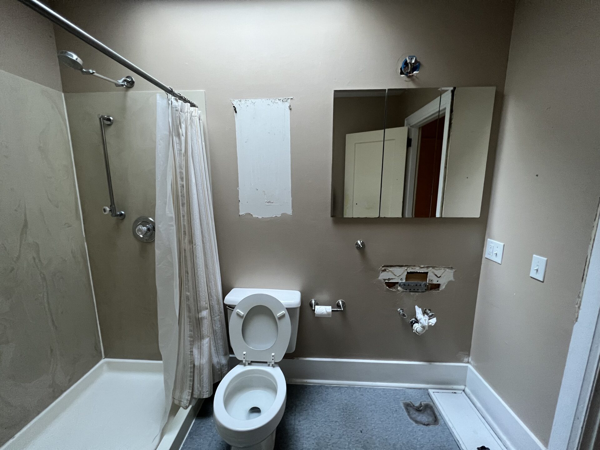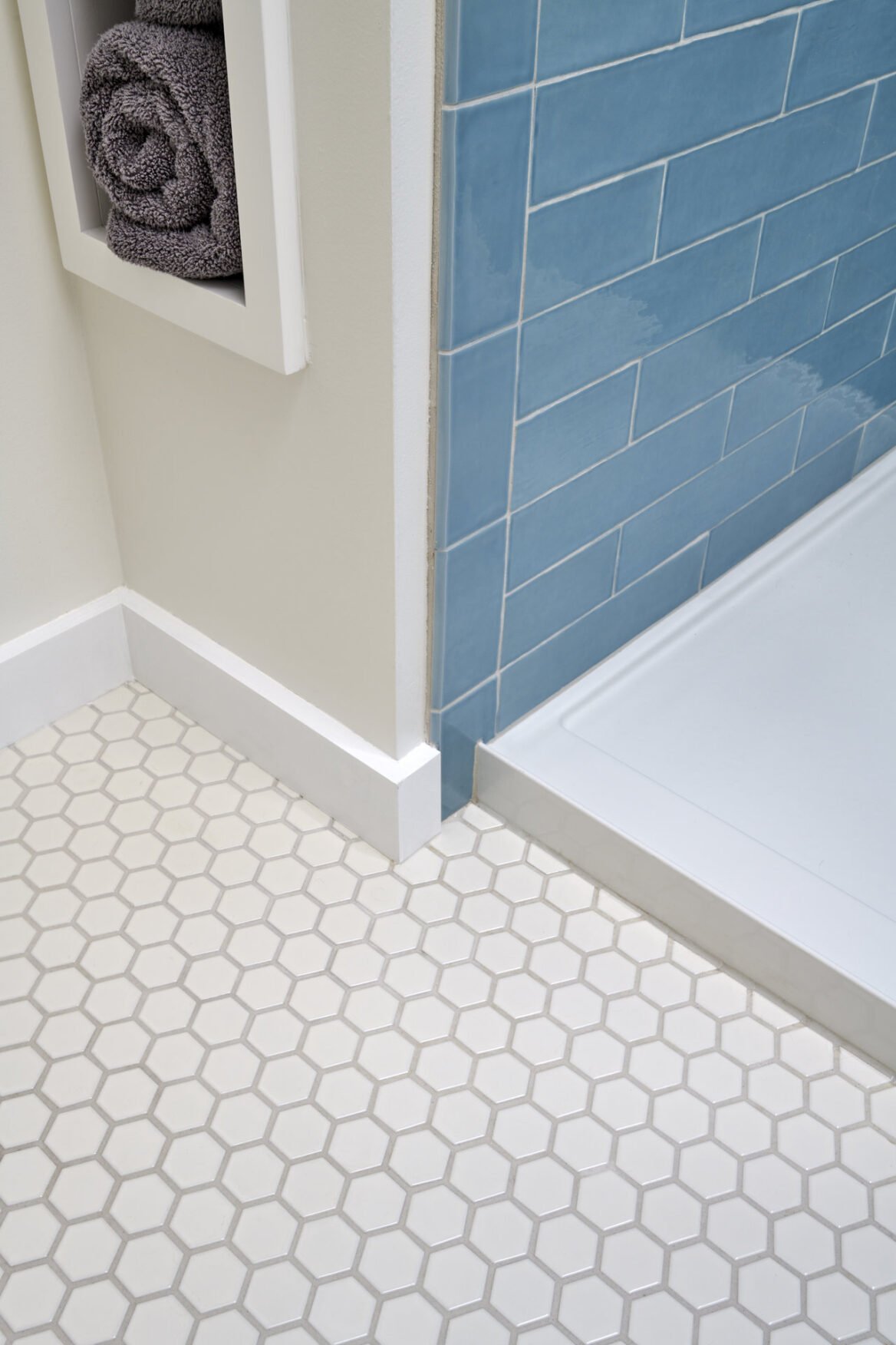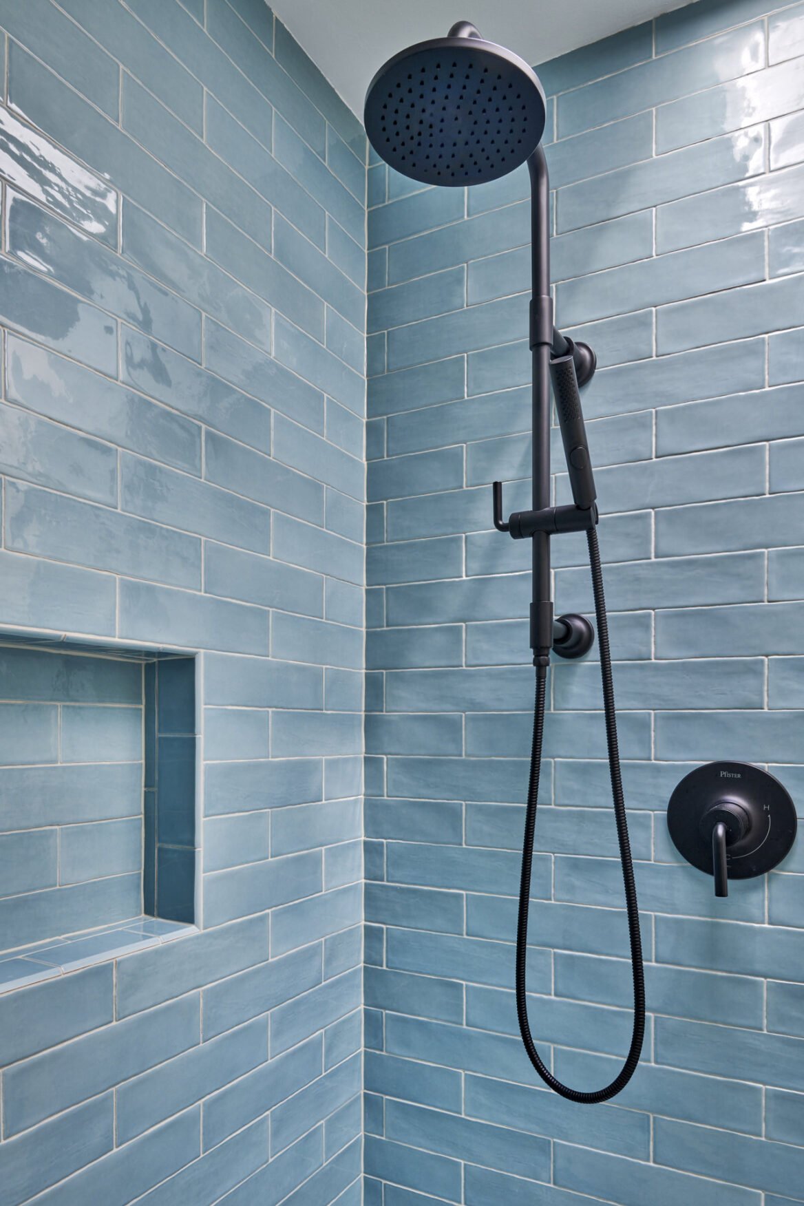 This bathroom renovation is a shining example of how a space can transform remarkably while preserving its original layout. The homeowners were particularly fond of the existing arrangement of their bathroom, appreciating its practicality and functionality. However, as tastes and design trends evolved, they wanted to infuse a fresh and contemporary style into the space. Our Home Services team came into this space and updated it to be more durable and functional while maintaining the layout. To make the space more durable, they installed tile floors/shower walls. This upgrade refreshed the space but also was a needed change from the original materials. To add more functionality, the team added built-in open shelving in the unused wall space next to the shower. These seemingly simple yet impactful updates truly transformed this bathroom.